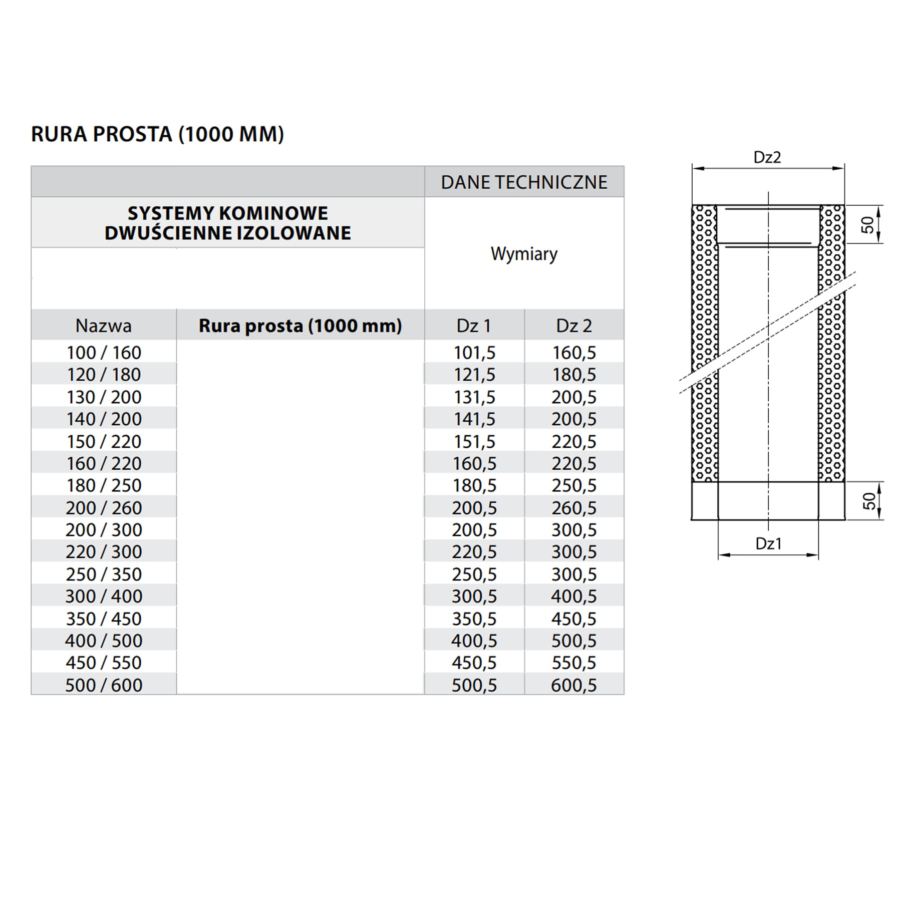 Rura kominowa izolowana wykonana z blachy kwasoodpornej przeznaczona jest do budowy wolnostojących kominów lub do przedłużenia już istniejących do urządzeń grzewczych z otwartą komorą spalania opalanych gazem lub olejem opałowym.