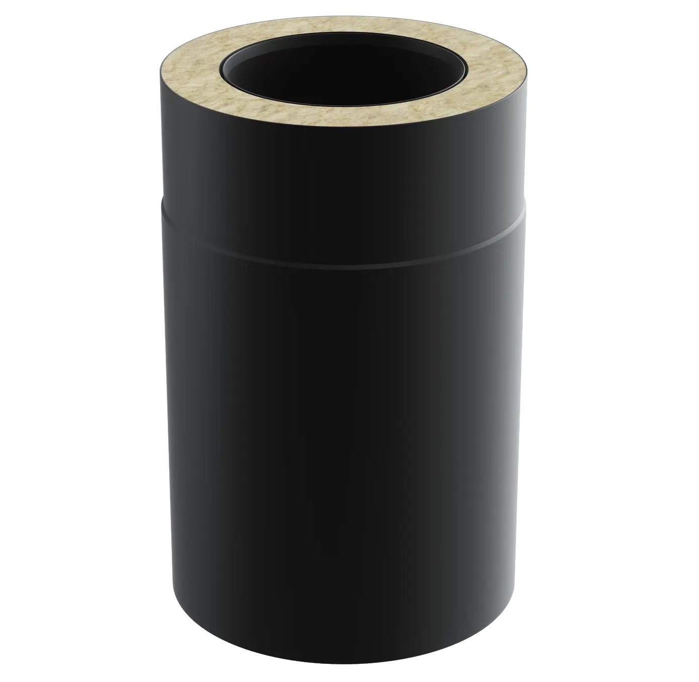 Płaszcz zewnętrzny wykonany jest z blachy ocynkowanej malowanej proszkowo na czarno w kolorze RAL 9005, co pozwala idealnie dopasować komin do estetyki budynku.