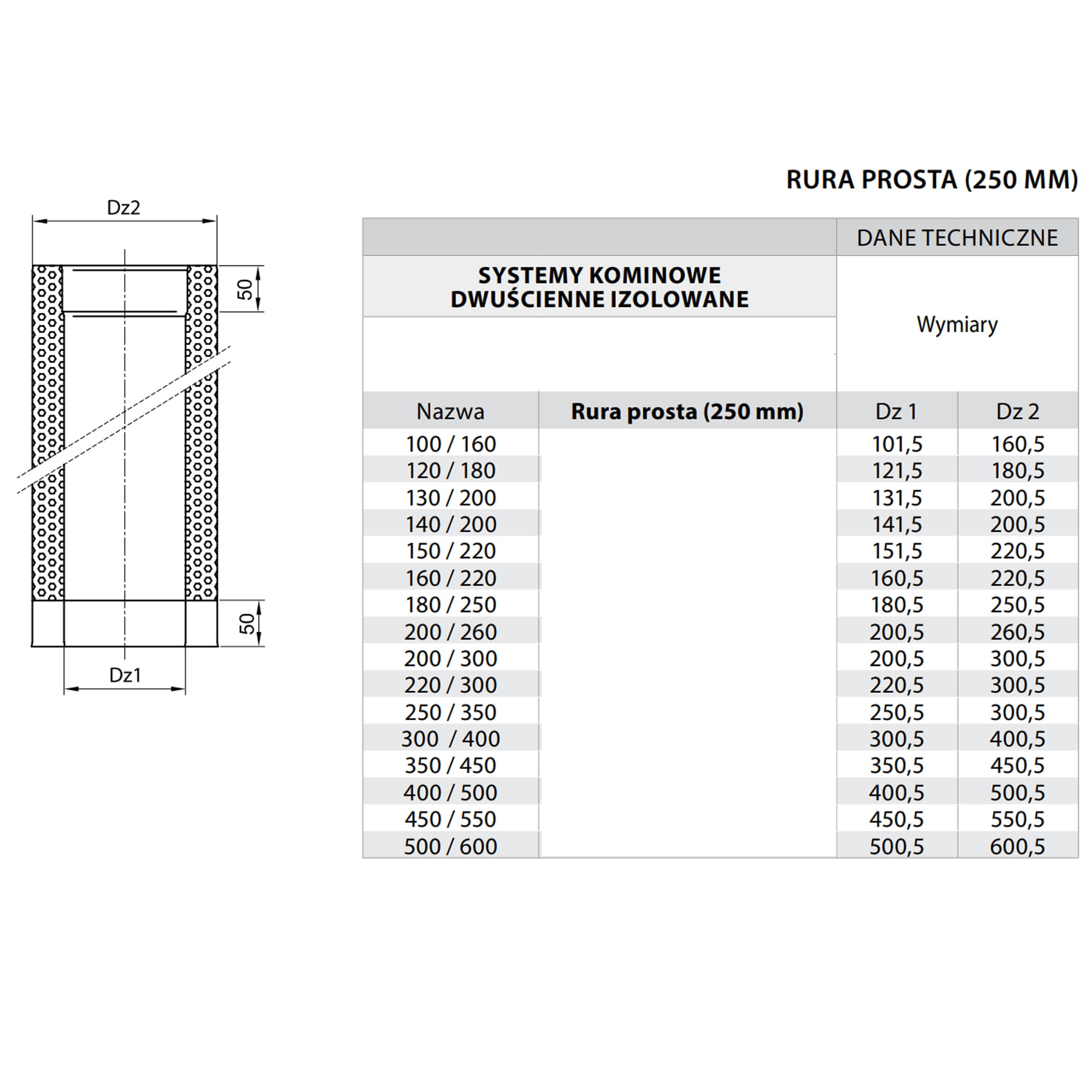 Rura kominowa izolowana fi 150/220 0,25 mb kwasoodporna
