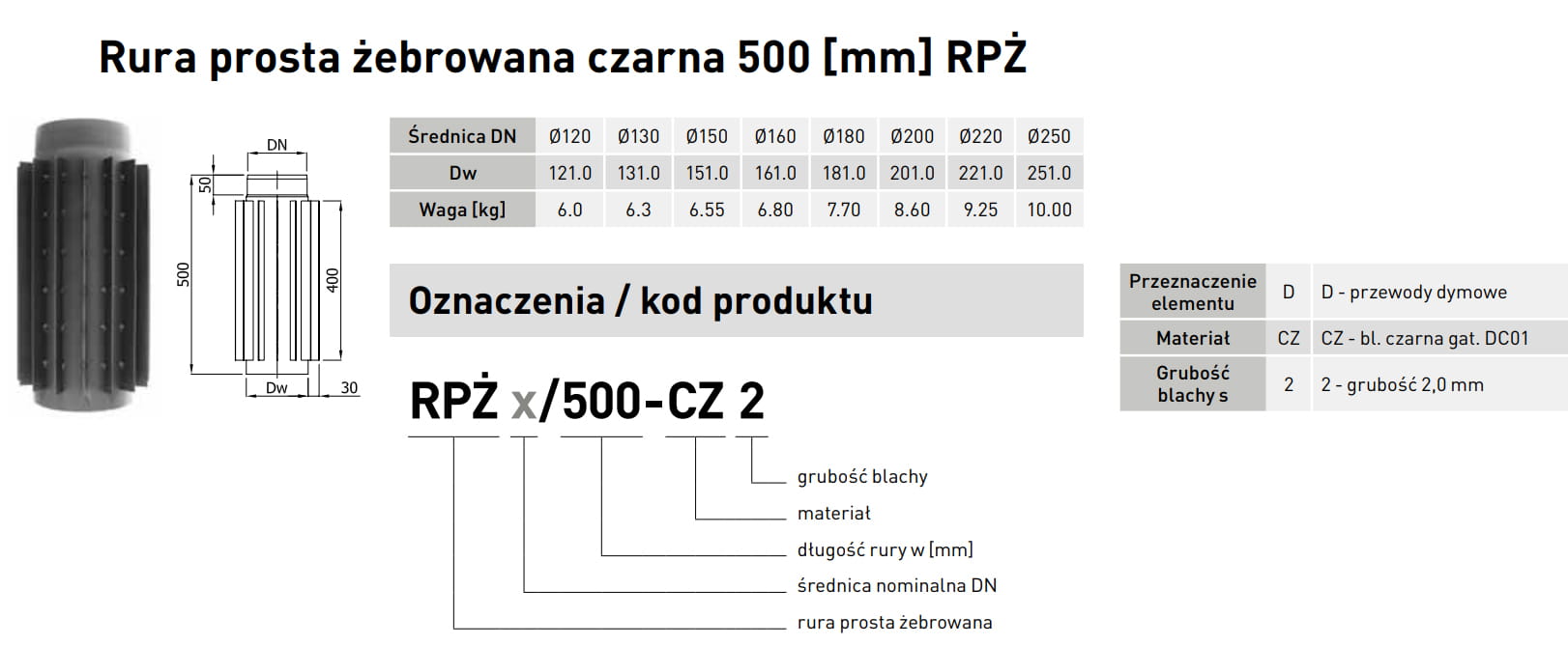 Rura prosta żebrowana radiator fi 120 Darco