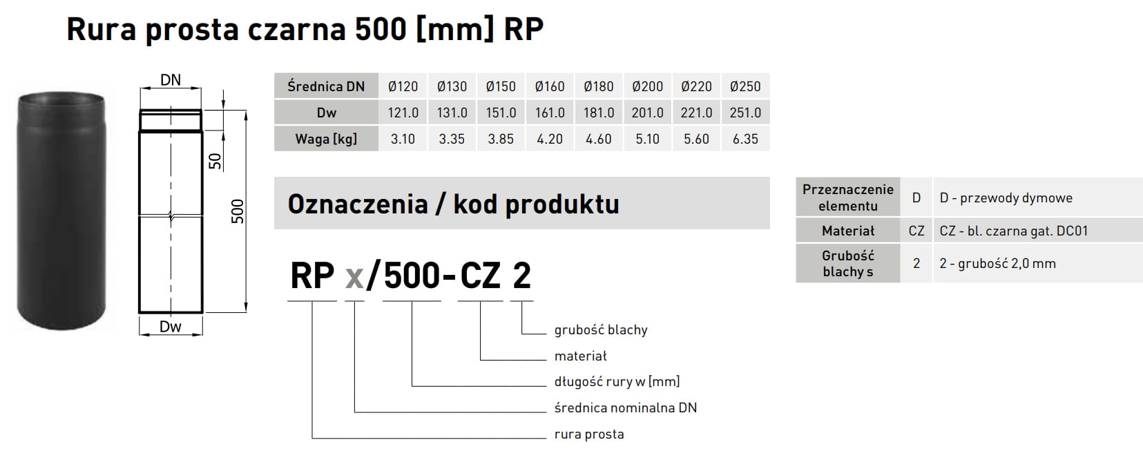 Rura przeznaczone jest do budowy przyłączy kominowych z kominków i pieców na paliwa stałe, wykonanych w całości ze stali czarnej.