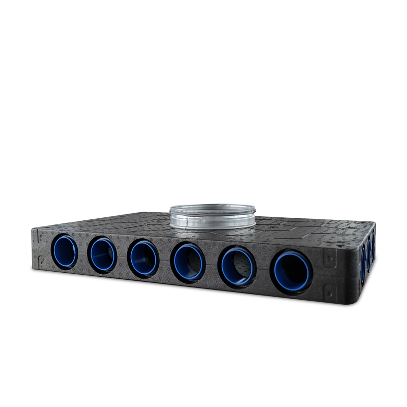 Skrzynki rozdzielcze FLX-PLO-EPP-R w systemie rekuperacji FLX-REKU służą do rozprowadzenia powietrza nawiewanego lub zebrania powietrza zużytego z pomieszczeń podłączonych do systemu rekuperacji i są bezpośrednio podłączone do centrali wentylacyjnej.