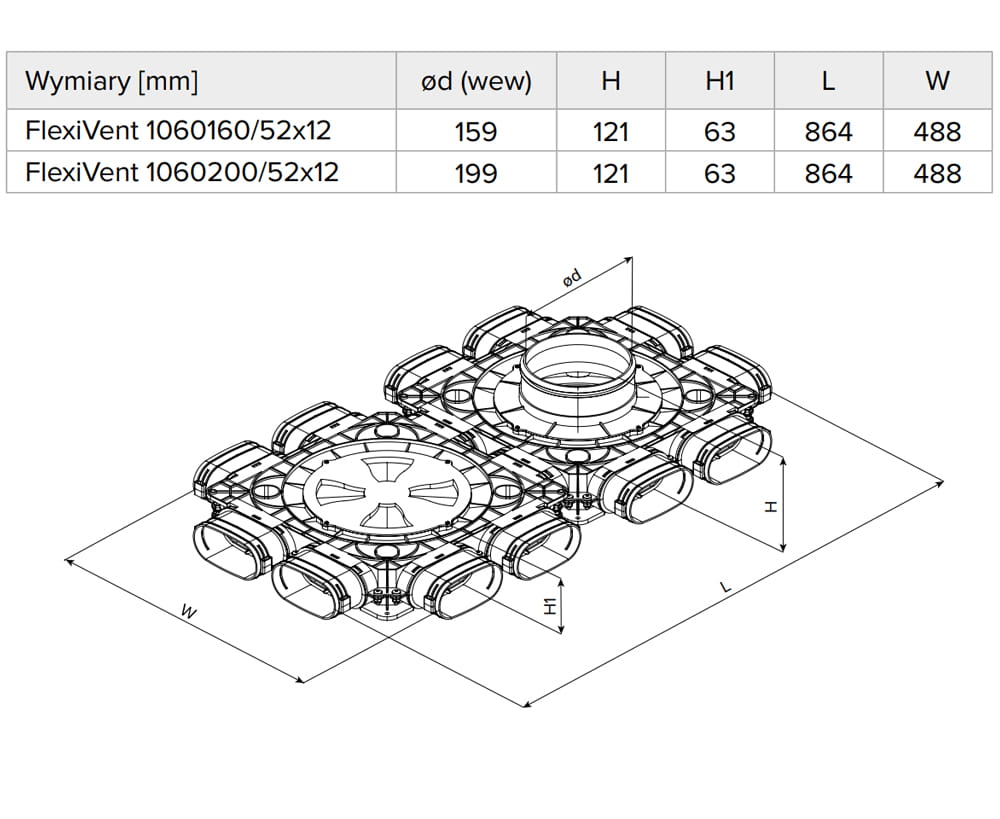Skrzynka rozdzielcza do rekuperacji FlexiVent 12x52/200 mm