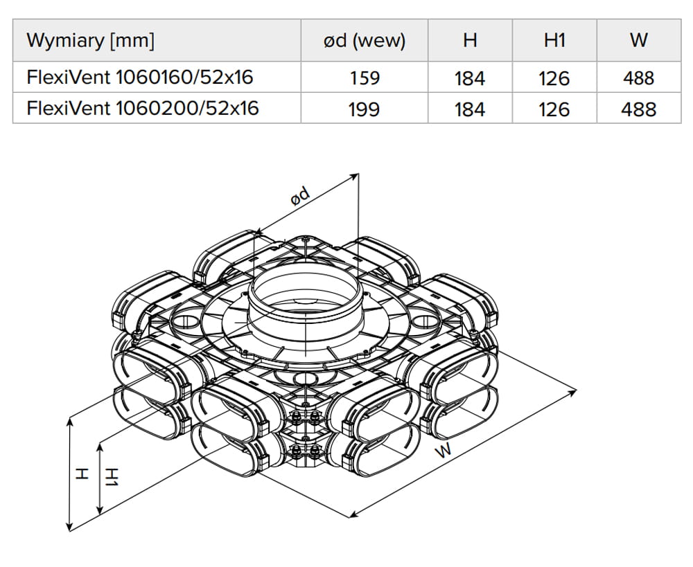 Skrzynka rozdzielcza do rekuperacji FlexiVent 16x52/200 mm