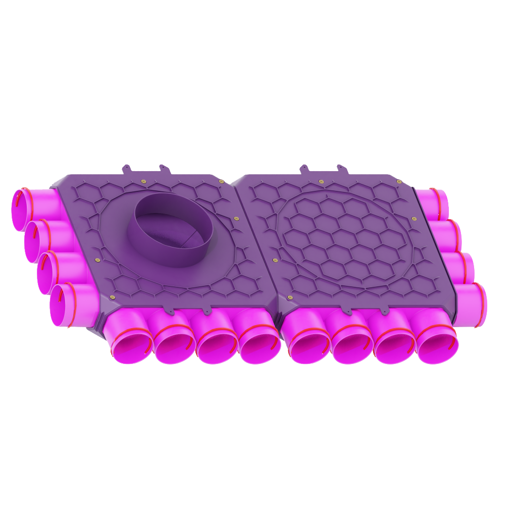 Konstrukcja skrzynki rozdzielczej Max-Vent została wykonana w technologi plastra miodu, dodatkowo zastosowane zewnętrze wzmocnienia zapewniają sztywną i zwartą konstrukcję, bez ingerencji w przepływ powietrza.