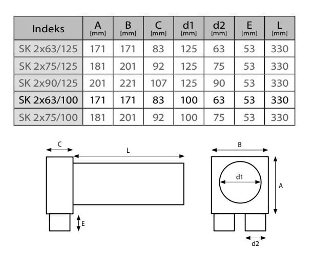 Skrzynka rozprężna dwu-króćcowa 2x75 mm fi 125 z króćcem GM