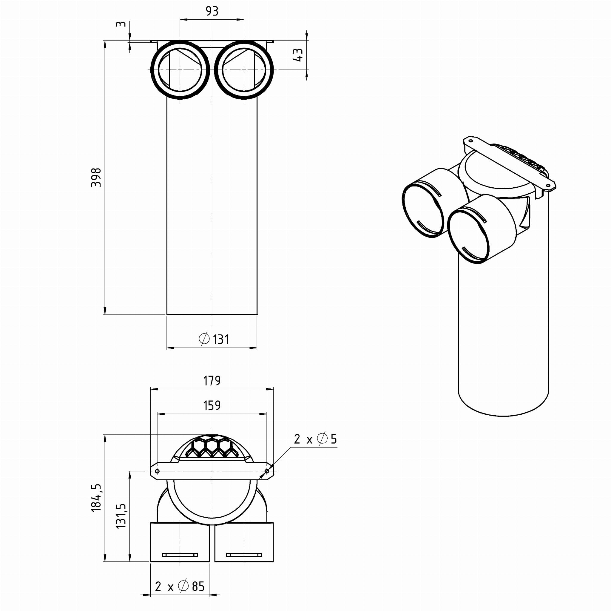 Skrzynka rozprężna do rekuperacji 2x75 fi 125 Max-Vent