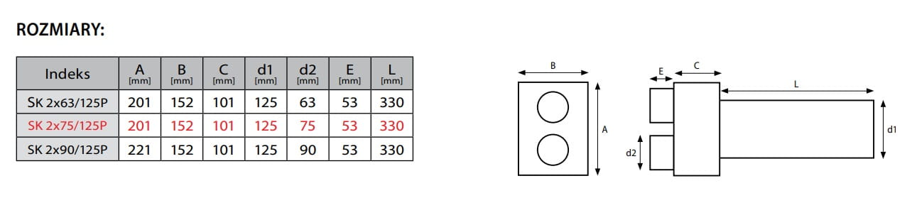 Skrzynka rozprężna przelotowa dwu-króćcowa 2x90 mm fi 125