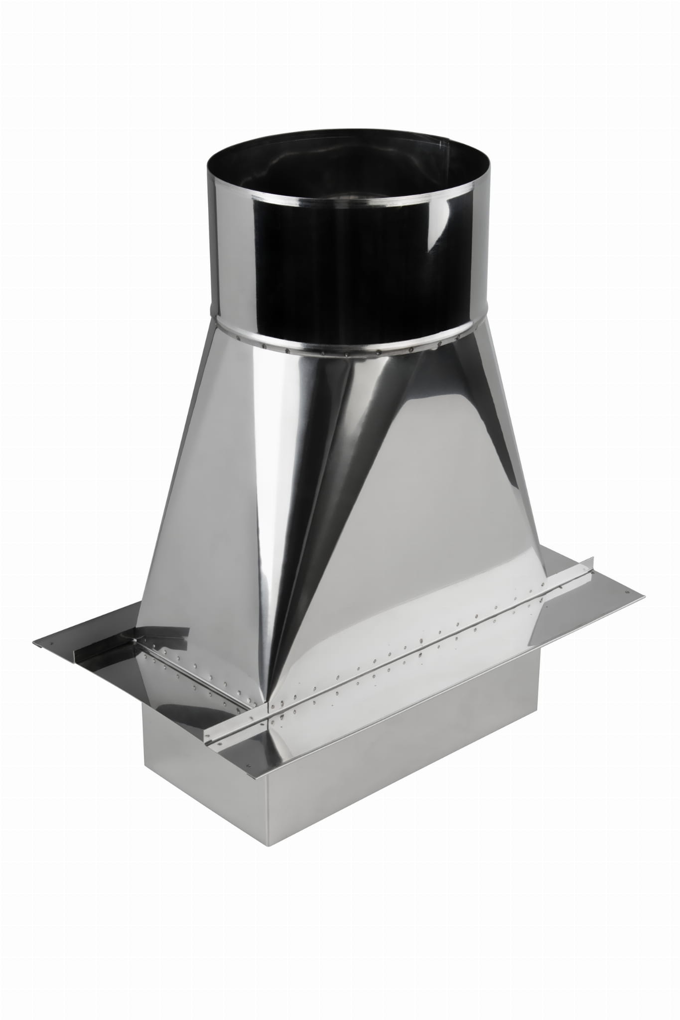 Przejście redukcyjne pod nasadę wykonane z blachy kwasoodpornej przeznaczone jest do zabezpieczenia przestrzeni wokół komina przed niekorzystnymi warunkami atmosferycznymi dodatkowo ułatwia montaż nasady kominowej.