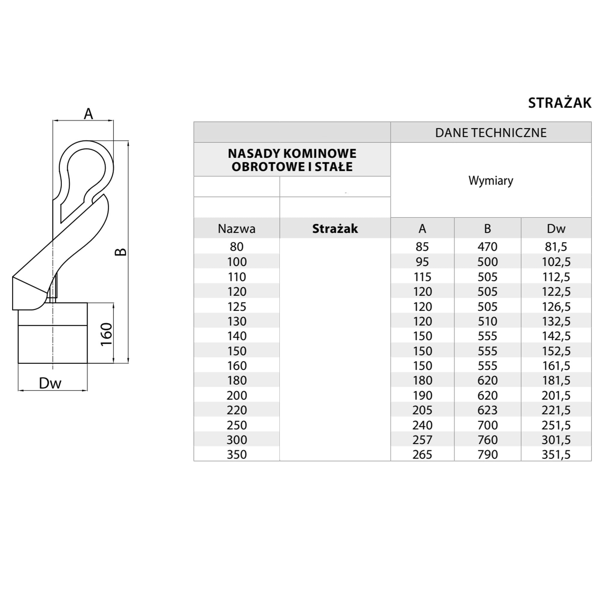 Strażak kominowy wykonany z blachy kwasoodpornej przeznaczony jest do wspomagania wentylacji grawitacyjnej wywiewnej oraz ciągu w kominach spalinowych, dymowych i wentylacyjnych.