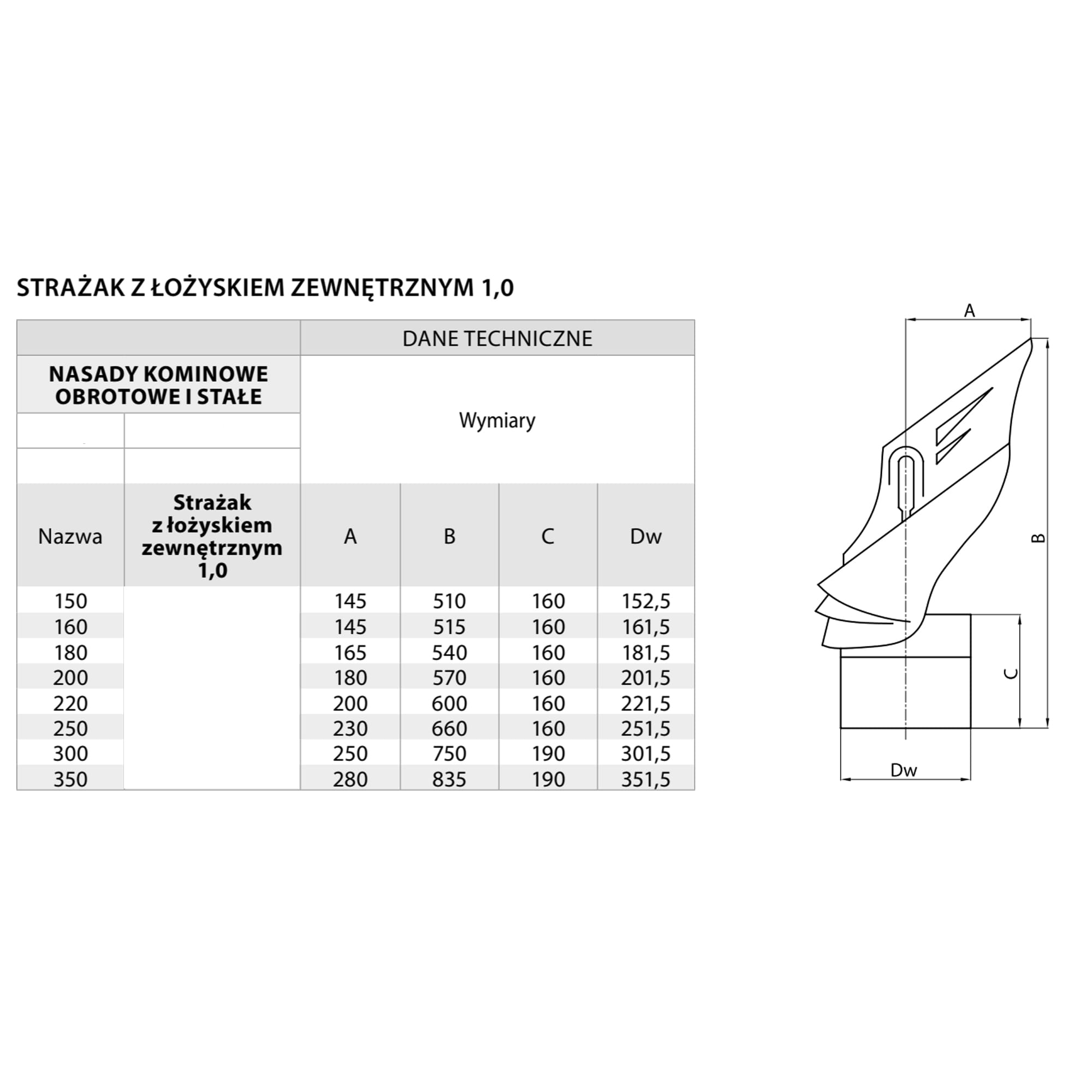 Strażak kominowy z łożyskiem wykonany z blachy kwasoodpornej przeznaczony jest do wspomagania wentylacji grawitacyjnej wywiewnej oraz ciągu w kominach spalinowych, dymowych i wentylacyjnych.