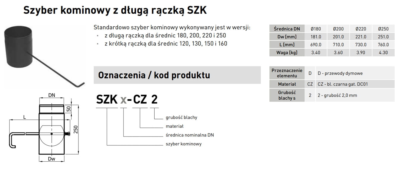 Szyber kominowy spalinowy czarny fi 250 Darco
