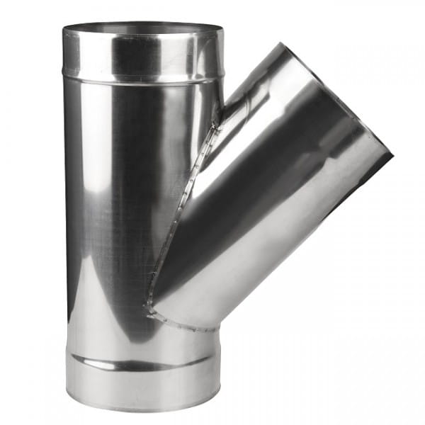Trójnik kominowy wykonany z blachy kwasoodpornej przeznaczony jest do podłączenia pieca opalanego gazem lub olejem opałowym z wkładem kominowym pod kątem 45°.