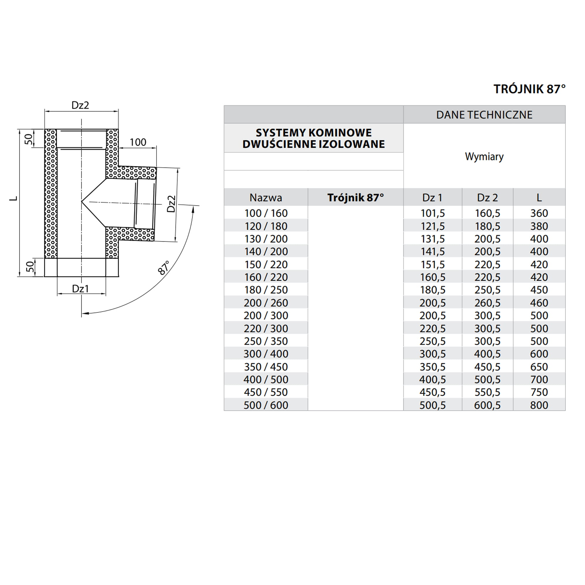 Trójnik kominowy izolowany wykonany z blachy kwasoodpornej przeznaczony jest do podłączenia pieca z otwartą komorą spalania opalanego gazem lub olejem opałowym z kominem izolowanym pod kątem 90°.