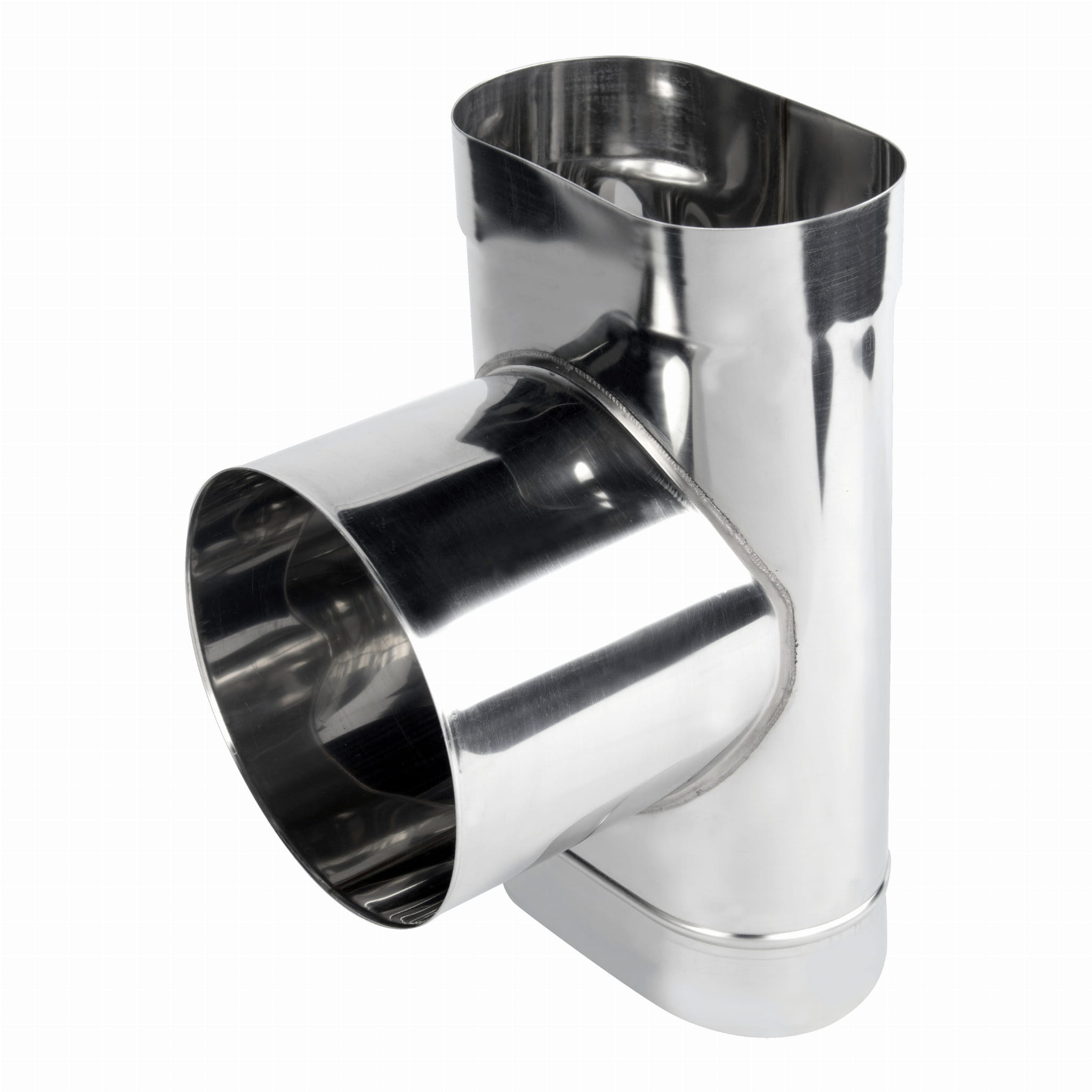 Trójnik kominowy owalny wykonany z blachy żaroodpornej przeznaczony jest do podłączenia pieca opalanego gazem, olejem opałowym, drewnem, ekologicznym paliwem stałym oraz węglem z wkładem kominowym pod kątem 87°.