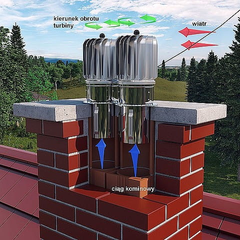 Nasada kominowa Turbowent firmy Darco wykonana z wysokiej jakości materiałów jest urządzeniem dynamicznie wykorzystującym siłę wiatru do wspomagania ciągu kominowego w przewodach wentylacyjnych, dodatkowo wyposażonym w silnik bezszczotkowy małej mocy do jego skutecznej stabilizacji.