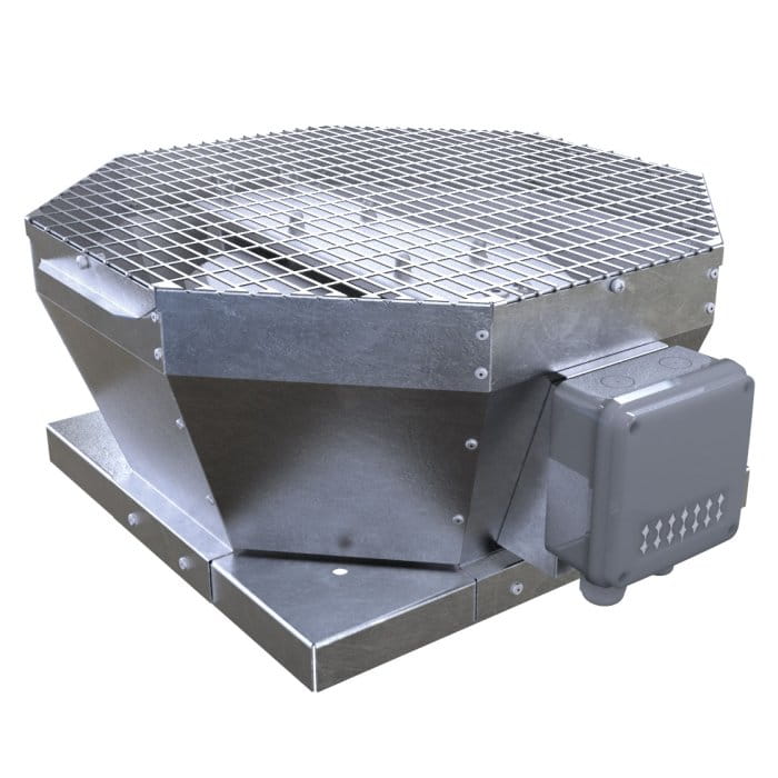 Obudowa wentylatora dachowego wykonana jest ze stali ocynkowanej, zapewniając dużą odporność na korozję oraz niekorzystne warunki atmosferyczne.