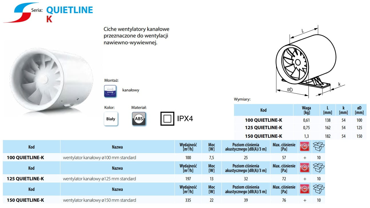 Wentylator kanałowy Vents 100 Quietline-K Standard