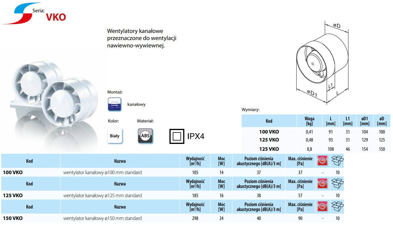 Wentylator kanałowy Vents serii VKO zapewnia wysoką wydajność, cichą i bezproblemową pracę oraz łatwy i szybki montaż, został zaprojektowany do systemów kanałów PVC lub elastycznych przewodów.