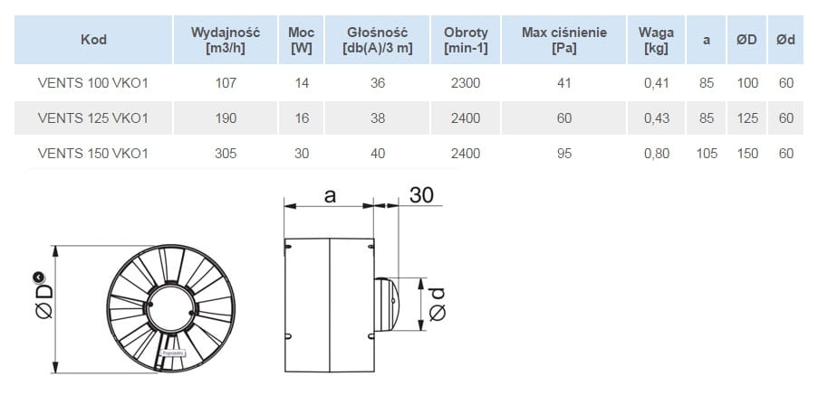 Wentylator kanałowy Vents serii VKO1 zapewnia wysoką wydajność, cichą i bezproblemową pracę oraz łatwy i szybki montaż, został zaprojektowany do systemów kanałów PVC lub elastycznych przewodów.