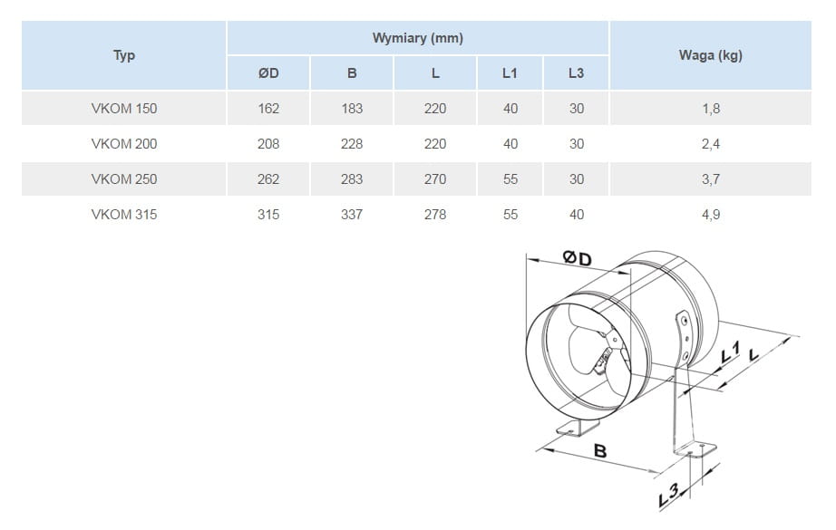 Wentylator kanałowy Vents z serii VKOMz gwarantuje bardzo wysoką wydajność, cichą, bezproblemową pracę oraz łatwy i szybki montaż.