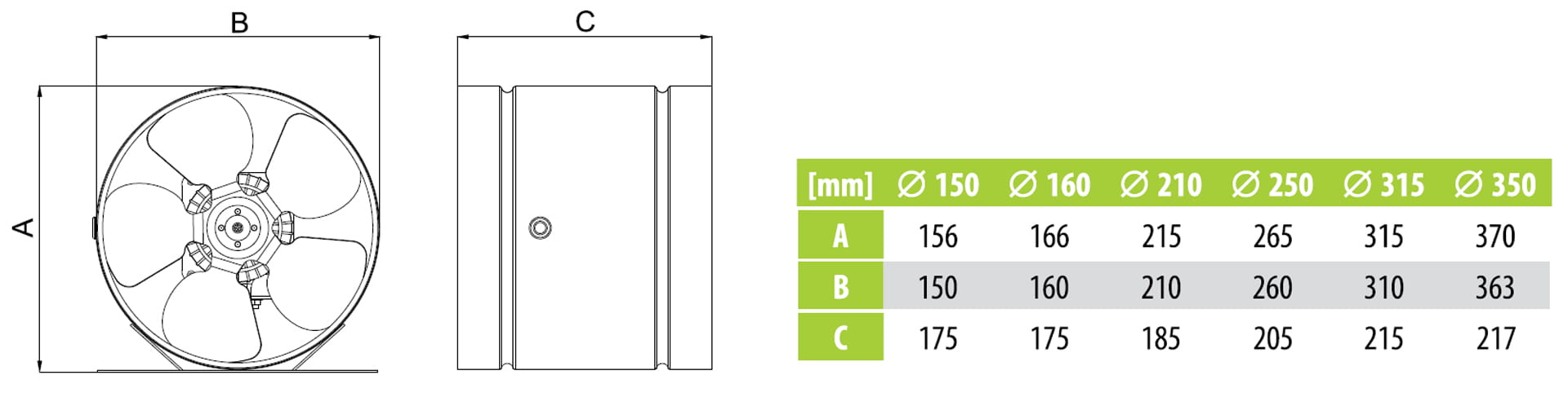 - Przystosowany do pracy ciągłej lub okresowej, wentylator nie wymaga konserwacji