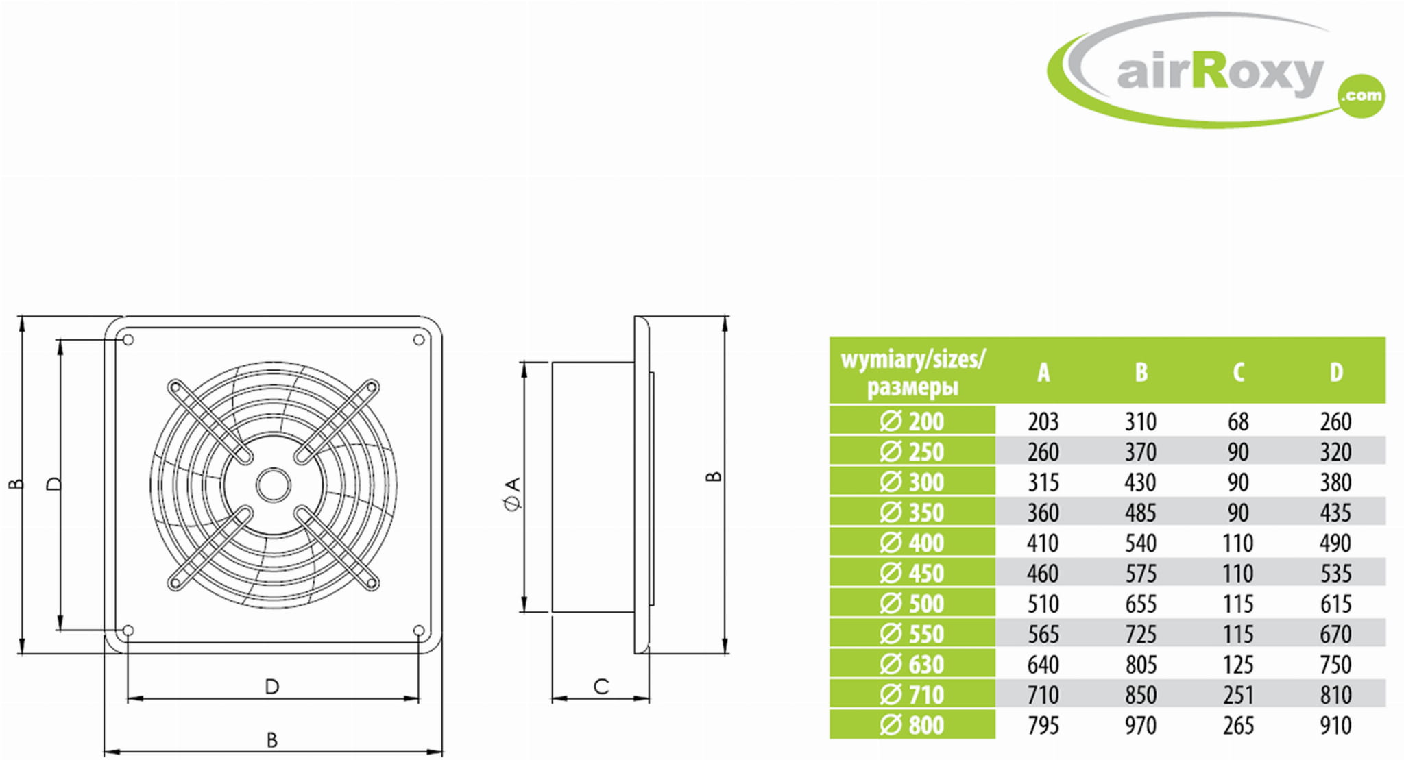 Wentylator osiowy ścienny airRoxy aRok fi 630