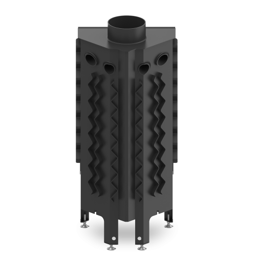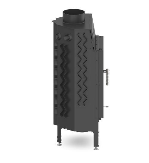 - Specjalnie zaprojektowana tylna część korpusu umożliwia doprowadzenie powietrza wtórnego do górnej części paleniska. Umożliwia podniesienie sprawności urządzenia poprzez dopalanie spalin.