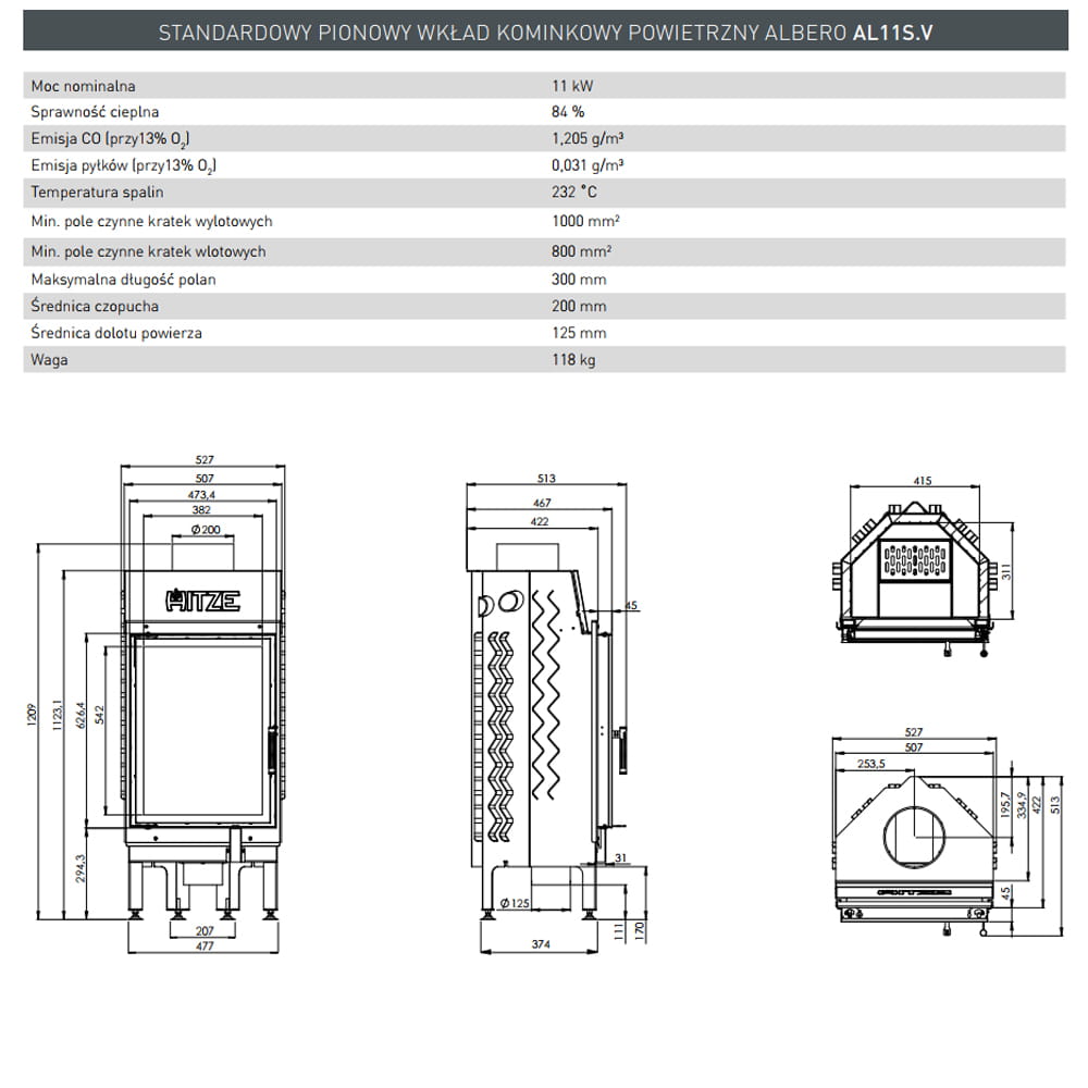 Wkład kominkowy Albero 11 kW Standard + szyba wewnętrzna