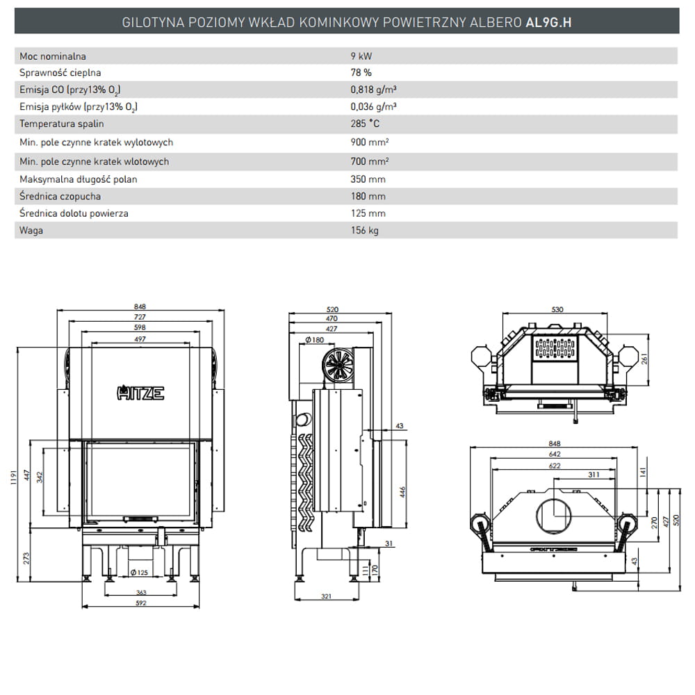 Wkład kominkowy Albero 9 kW Gilotyna Standard