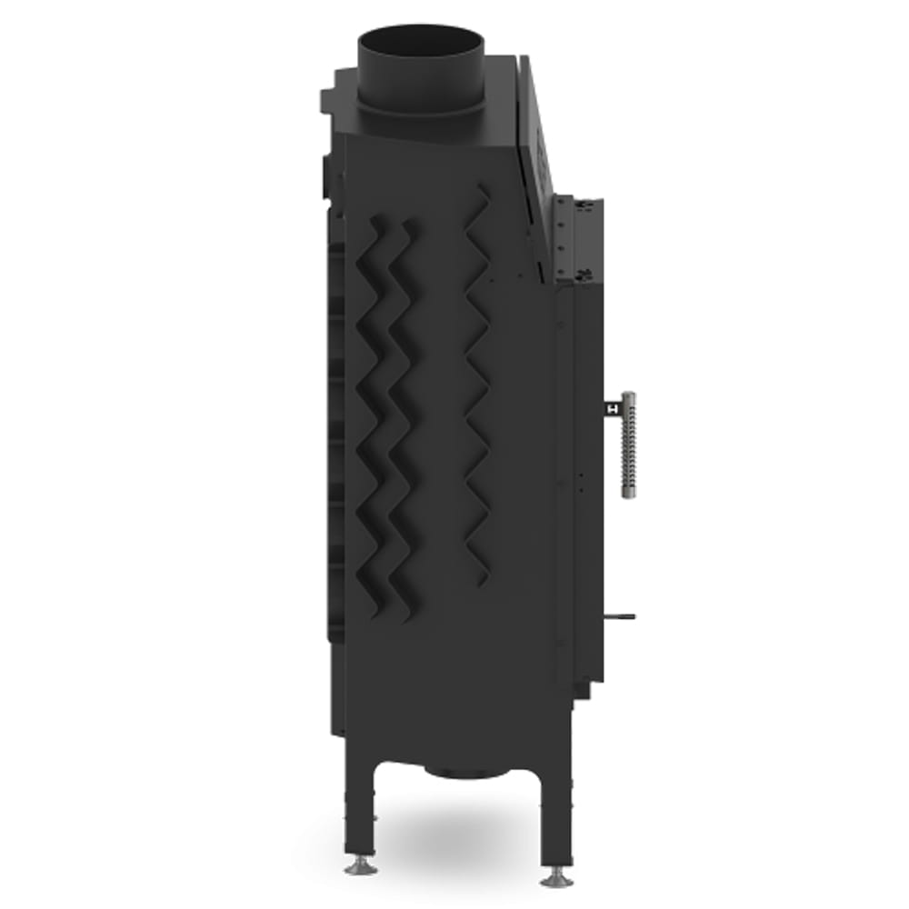 - Specjalnie zaprojektowana tylna część korpusu umożliwia doprowadzenie powietrza wtórnego do górnej części paleniska. Umożliwia podniesienie sprawności urządzenia poprzez dopalanie spalin.