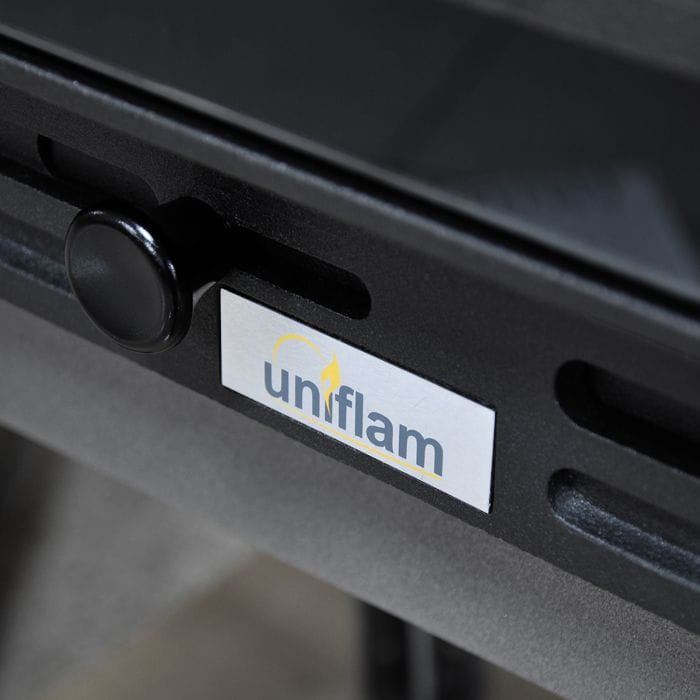 Żeliwny wkład kominkowy wyposażony dolot powietrza z zewnątrz, szyber oraz czarne zdobienia szyby. Przystosowany do montażu w domach z rekuperacją.Wkład kominkowy UNIFLAM 600 PLUS ECO spełnia normy Ekoprojekt oraz BImSchV2.