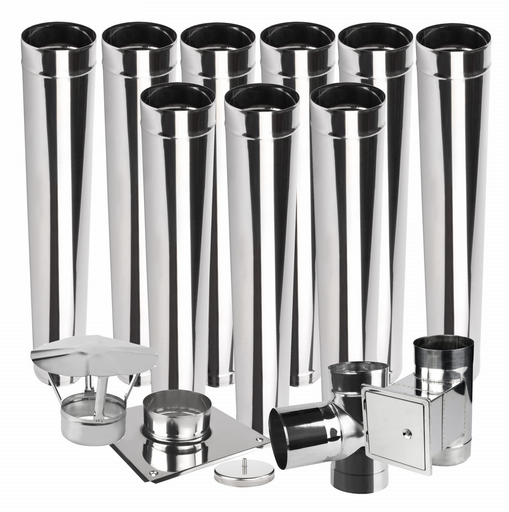 Oferowany wkład kominowy zawiera wszystkie elementy wykonane z blachy żaroodpornej grubości 1 mm., gatunek 1.4828.