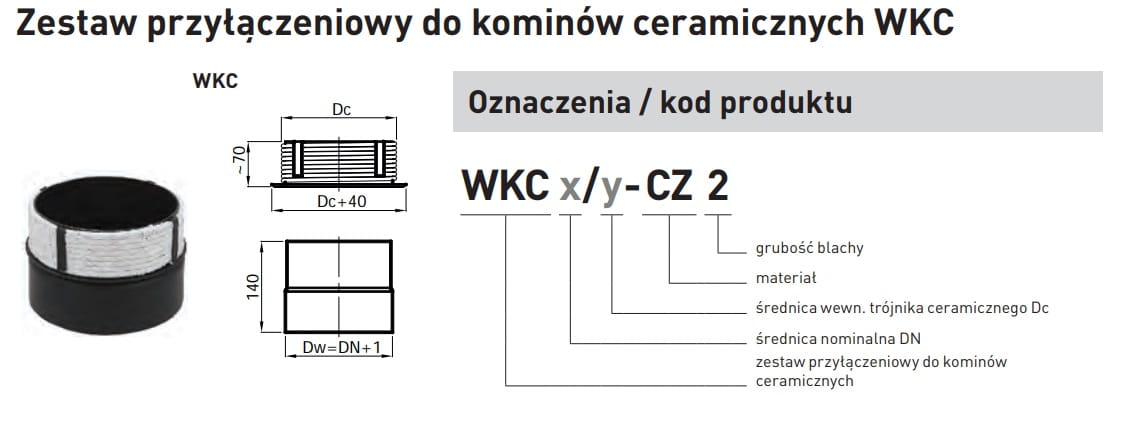 - średnica przyłącza ø 160mm, średnica komina ceramicznego ø 140mm