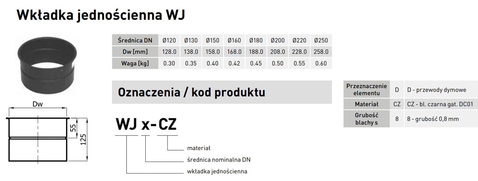 Wkładka spalinowa czarna jednościenna fi 150 Darco SPK