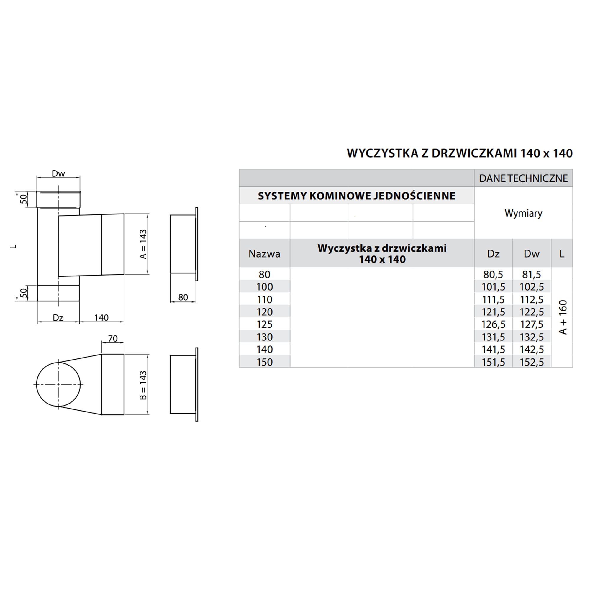 Wyczystka kominowa wykonana z blachy żaroodpornej ułatwia dostęp do wkładu kominowego w przypadku kontroli stanu, konserwacji lub czyszczenia.Wysokiej jakości drzwiczki rewizyjne zapewniają szczelność.