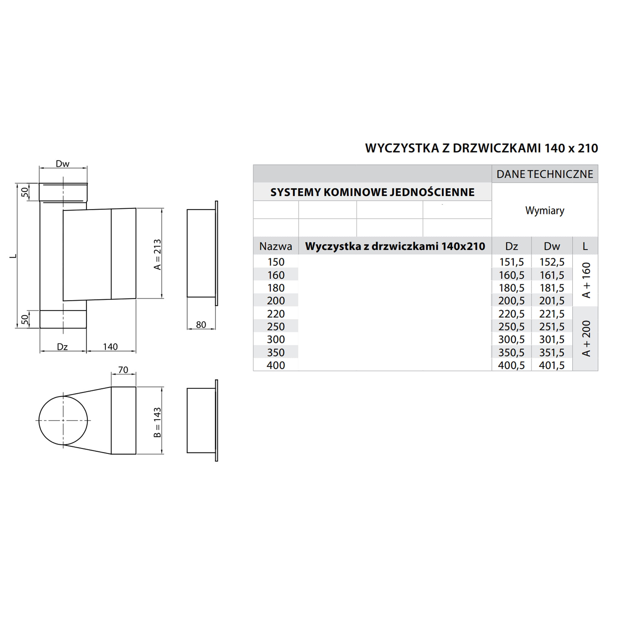 Wyczystka kominowa fi 150 z drzwiczkami 14x21 kwasoodporna