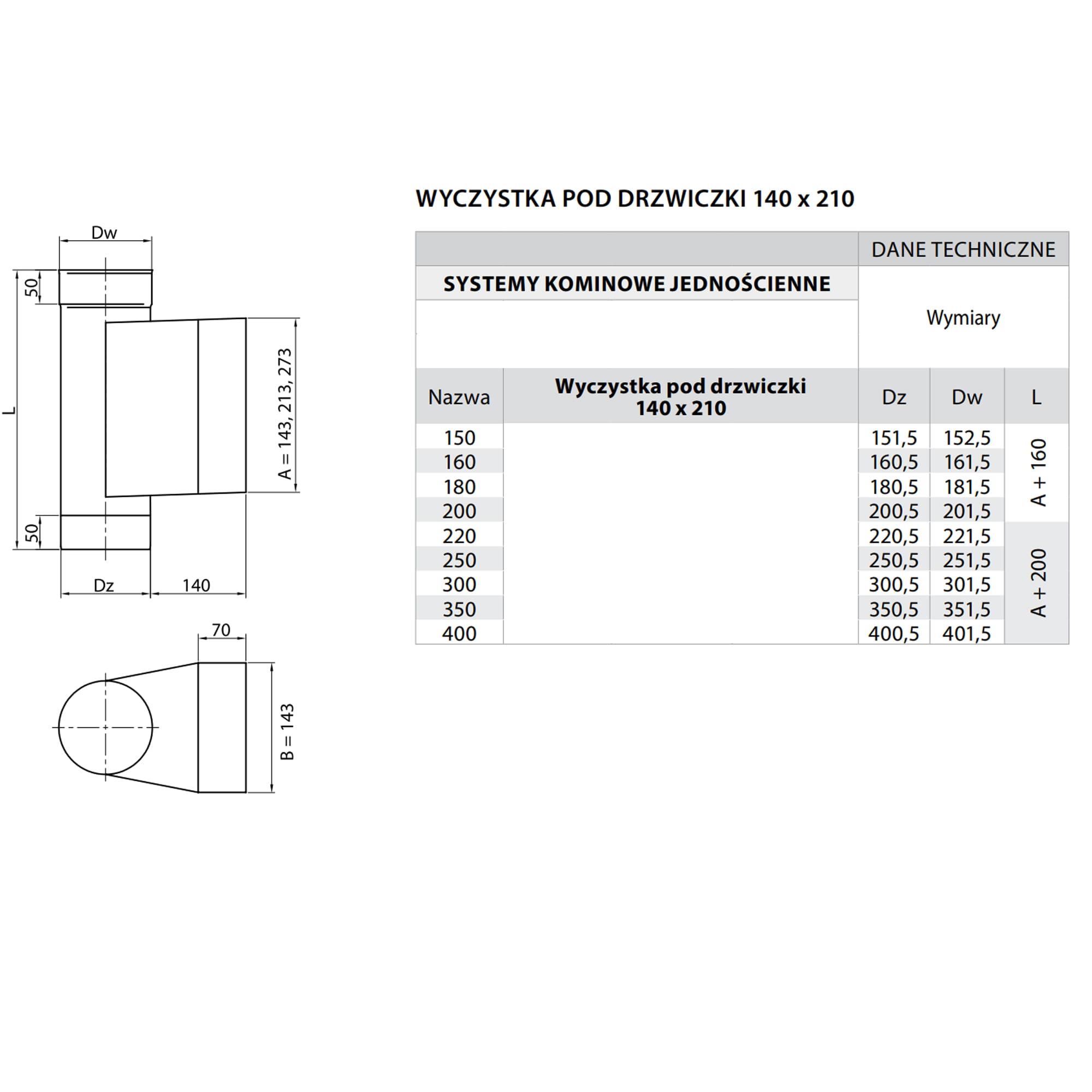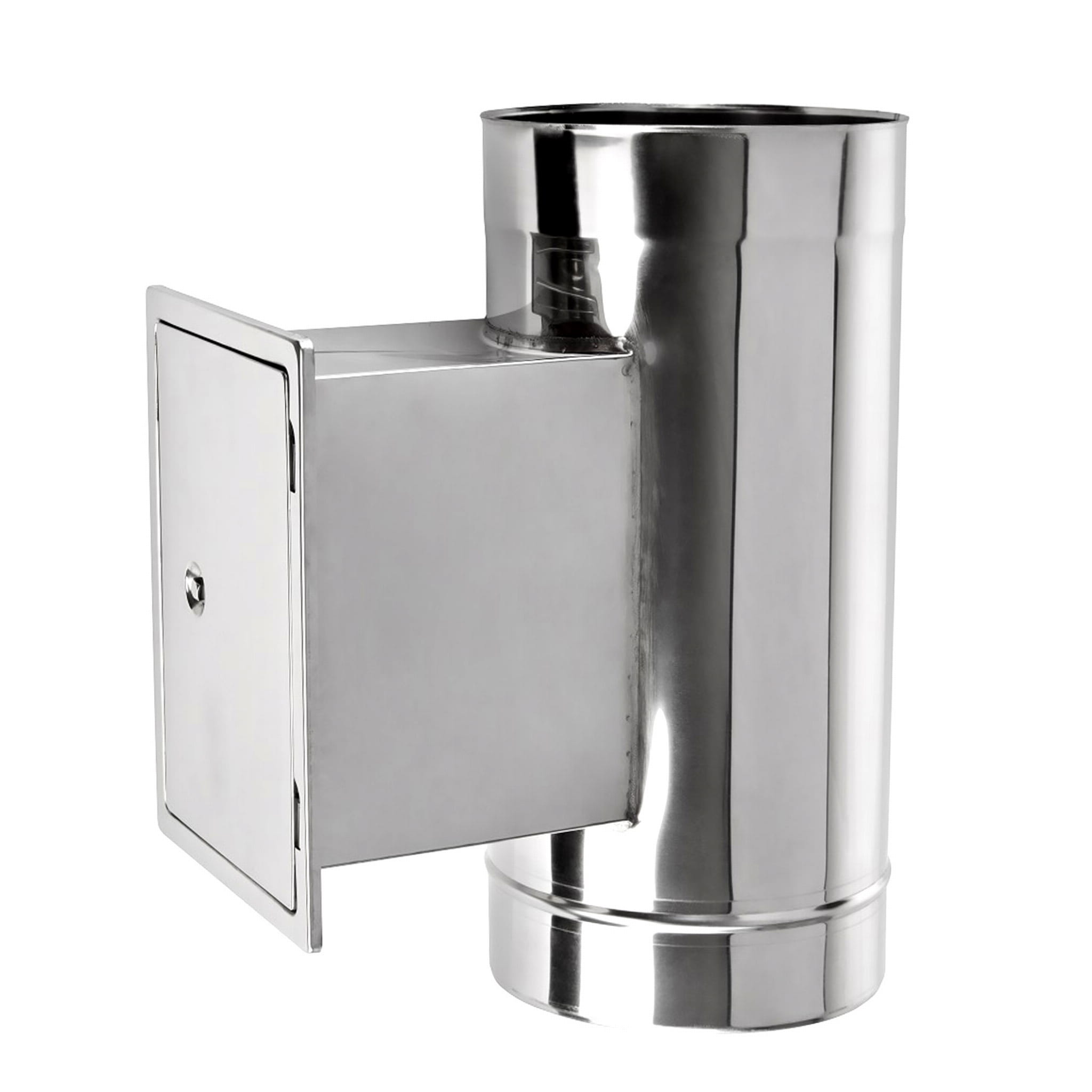 Wyczystka kominowa wykonana z blachy żaroodpornej ułatwia dostęp do wkładu kominowego w przypadku kontroli stanu, konserwacji lub czyszczenia.Wysokiej jakości drzwiczki rewizyjne zapewniają szczelność.