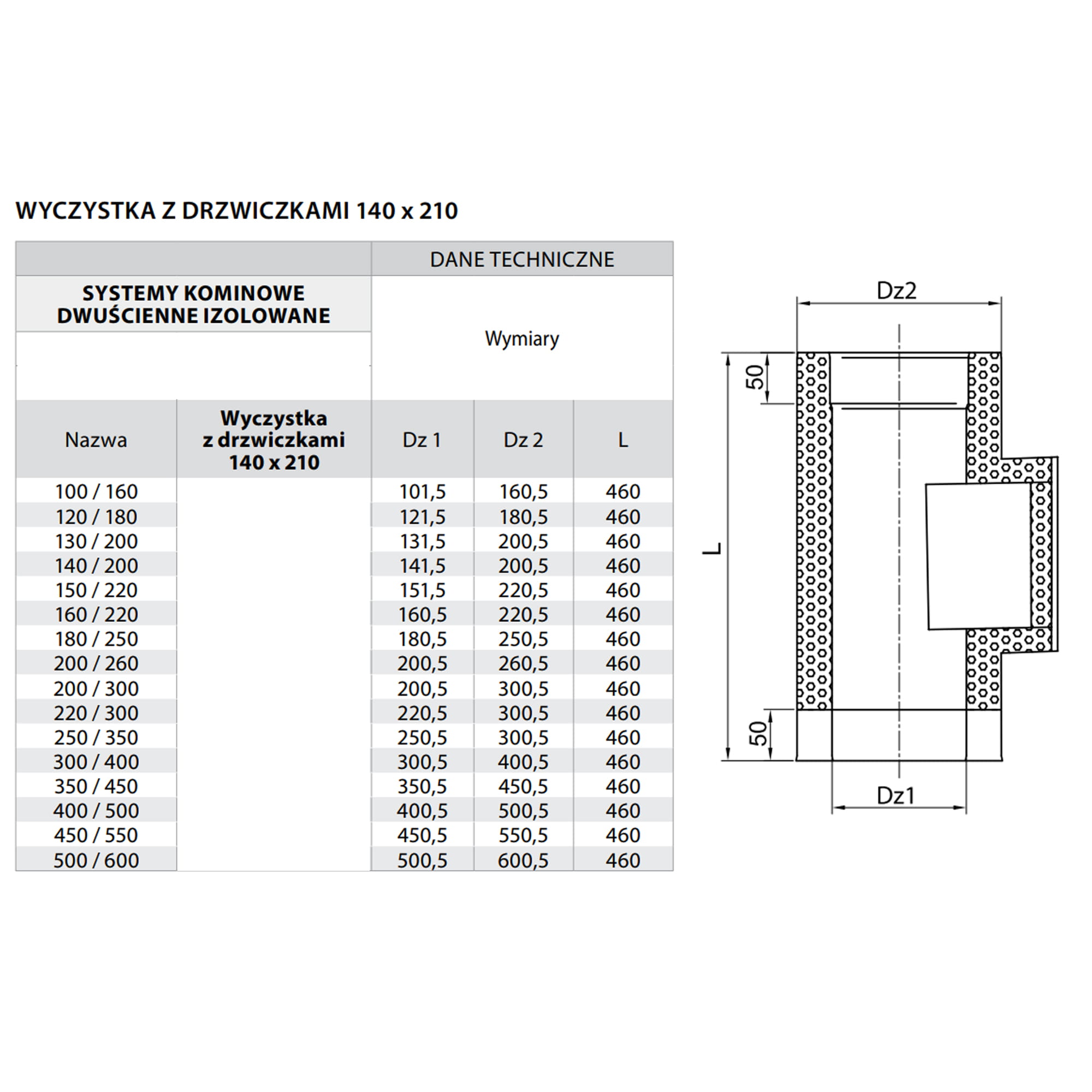 Wyczystka kominowa izolowana z drzwiczkami 14x21 fi 100/160 kwasoodporna
