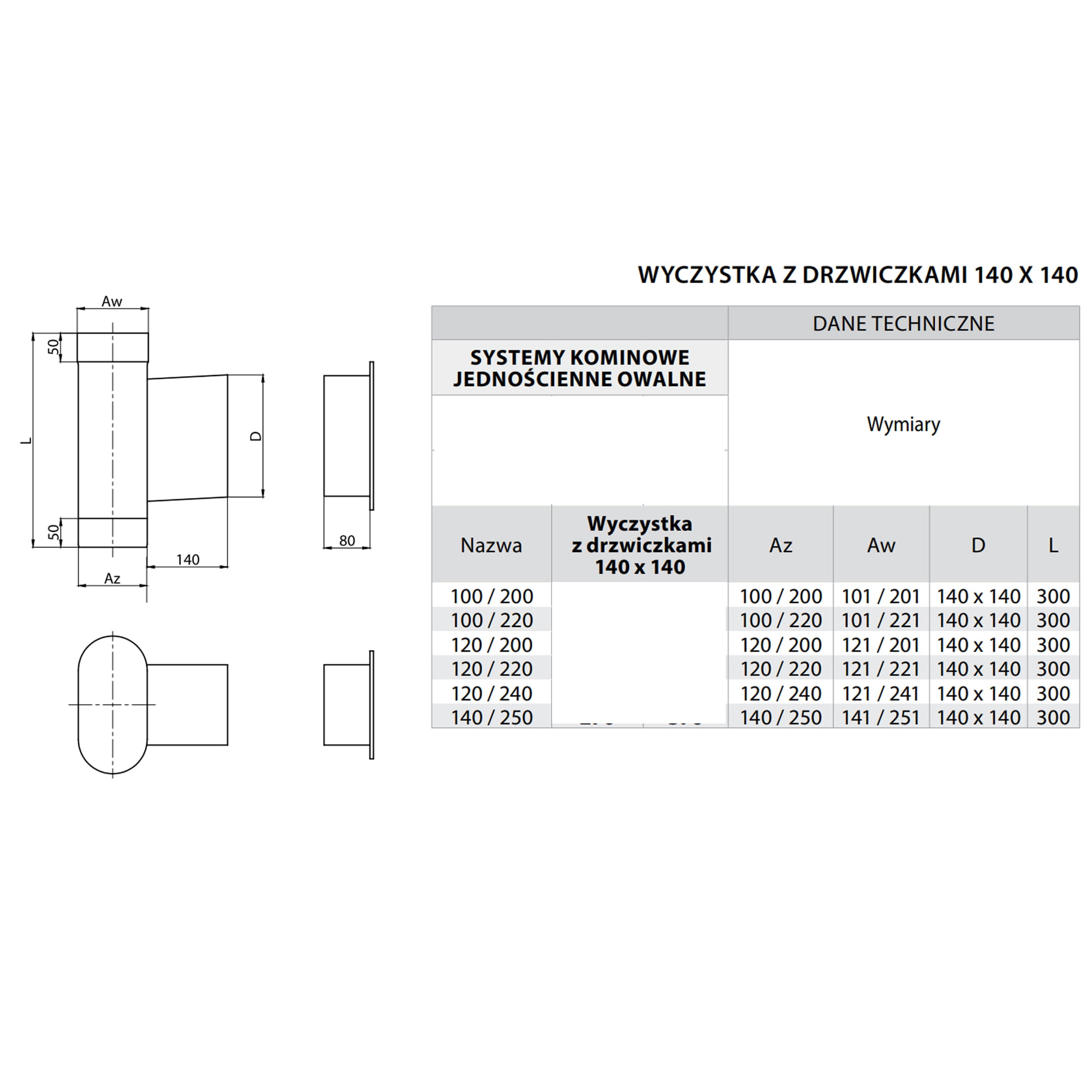 Wyczystka kominowa owalna z drzwiczkami 14x14 140/250 kwasoodporna
