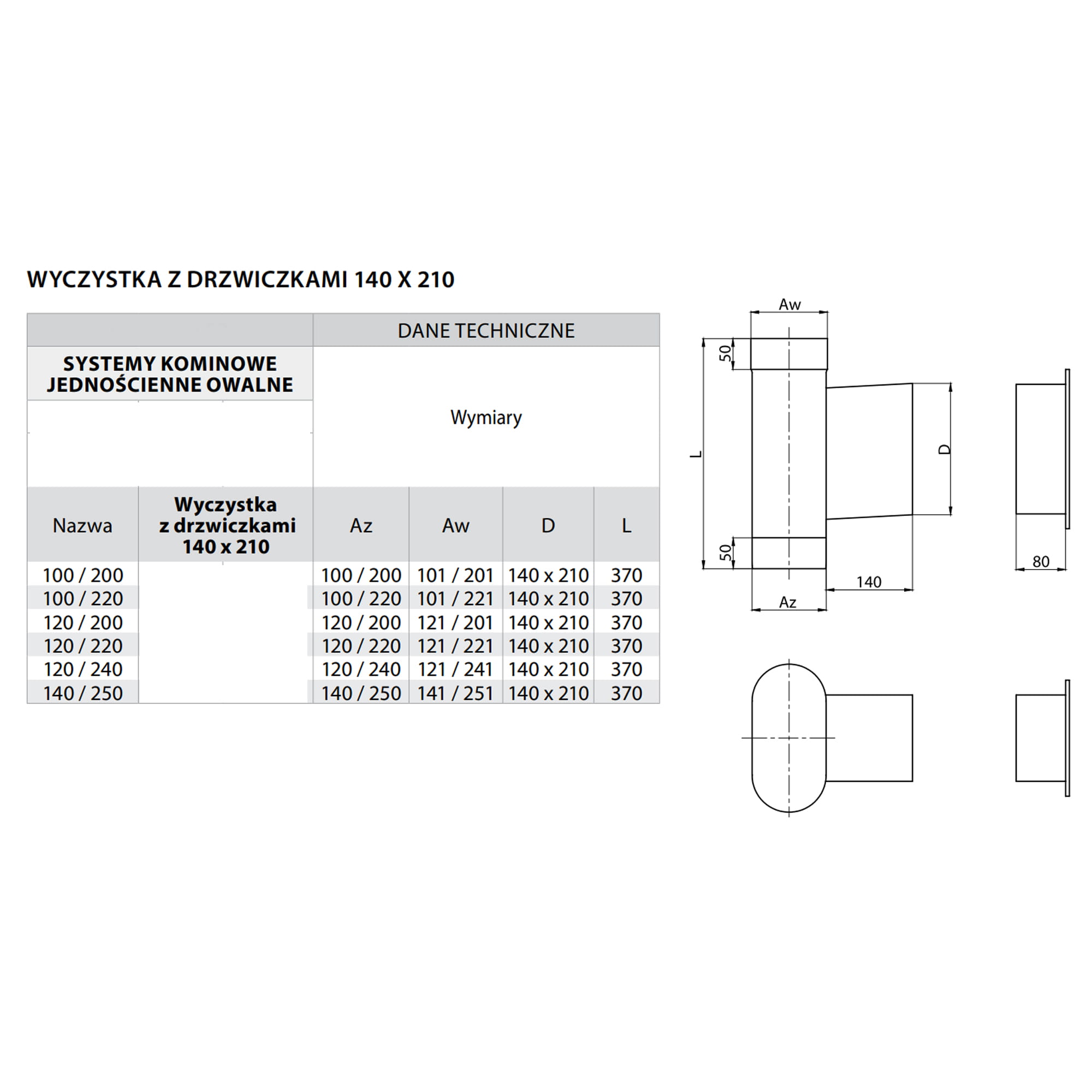 Wyczystka kominowa owalna z drzwiczkami 14x21 120/220 żaroodporna