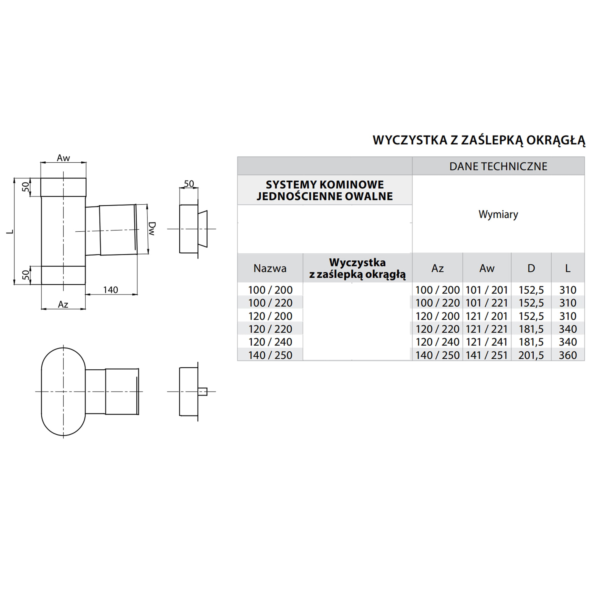 Wyczystka kominowa owalna z zaślepką 120/200 żaroodporna