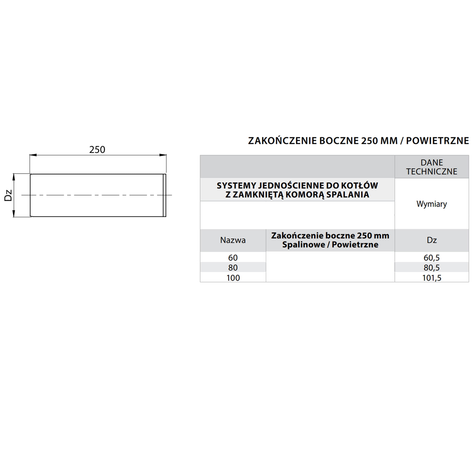 Zakończenie boczne wykonane z blachy kwasoodpornej przeznaczone jest do odprowadzania spalin w sytuacji gdy nie ma możliwości wyprowadzenie przewodu kominowego przez dach.