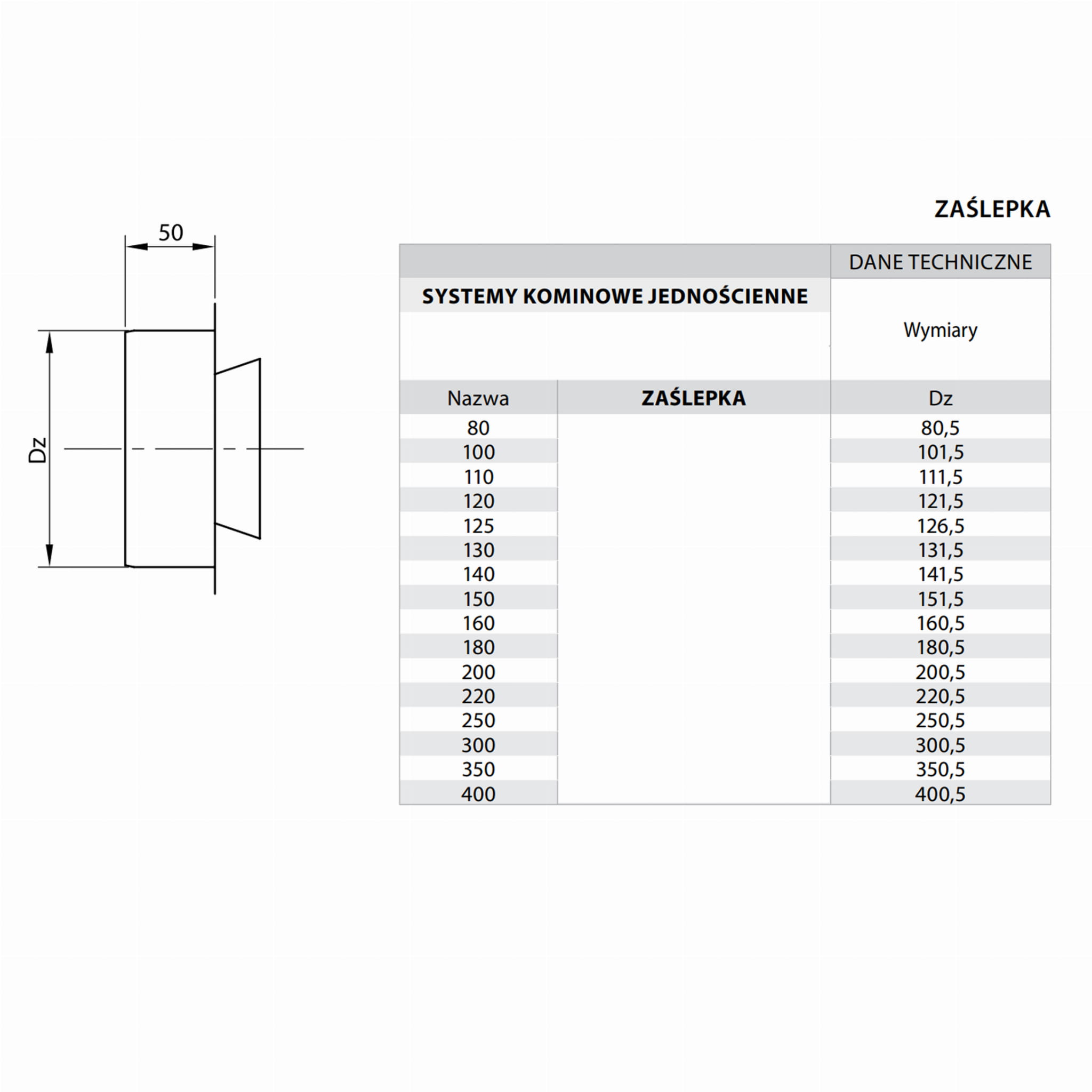 Zaślepka wykonana z blachy kwasoodpornej przeznaczona jest do zamknięcia otworu wyczystki okrągłej wkładu kominowego.