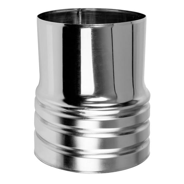 Złączka kielichowa wykonana z blachy kwasoodpornej pozwala w łatwy i szybki sposób połączyć wkład kominowy z rura elastyczna kwasoodporną Stalflex.